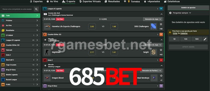 O 685bet oferece uma grande seleção de opções de apostas em e-sports com probabilidades competitivas